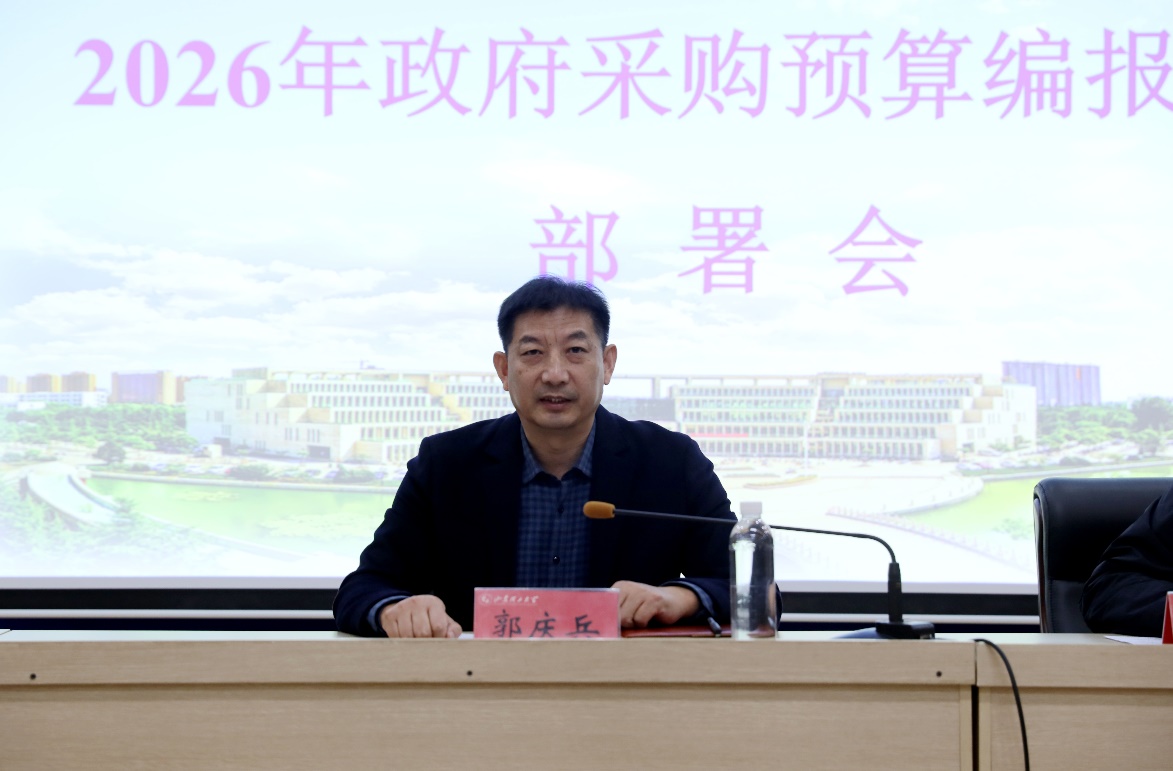 为全面落实政府采购预算编报工作要求,提高预算编报质量与精准度,保障2026年学校各项采购任务有序推进,11月4日下午,我校在逸夫图书馆负一层报告厅召开2026年政府采购预算编报工作部署会。校党委常委、副校长郭庆兵出席会议并讲话,各学院、研究院及校行政各部门、直属单位主管政府采购的负责人及预算编报管理员参加会议,会议由资产与实验设备管理处处长张少全主持。