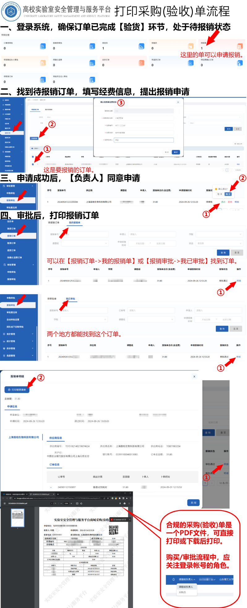 高校实验室安全管理与服务平台打印采购(验收)单流程