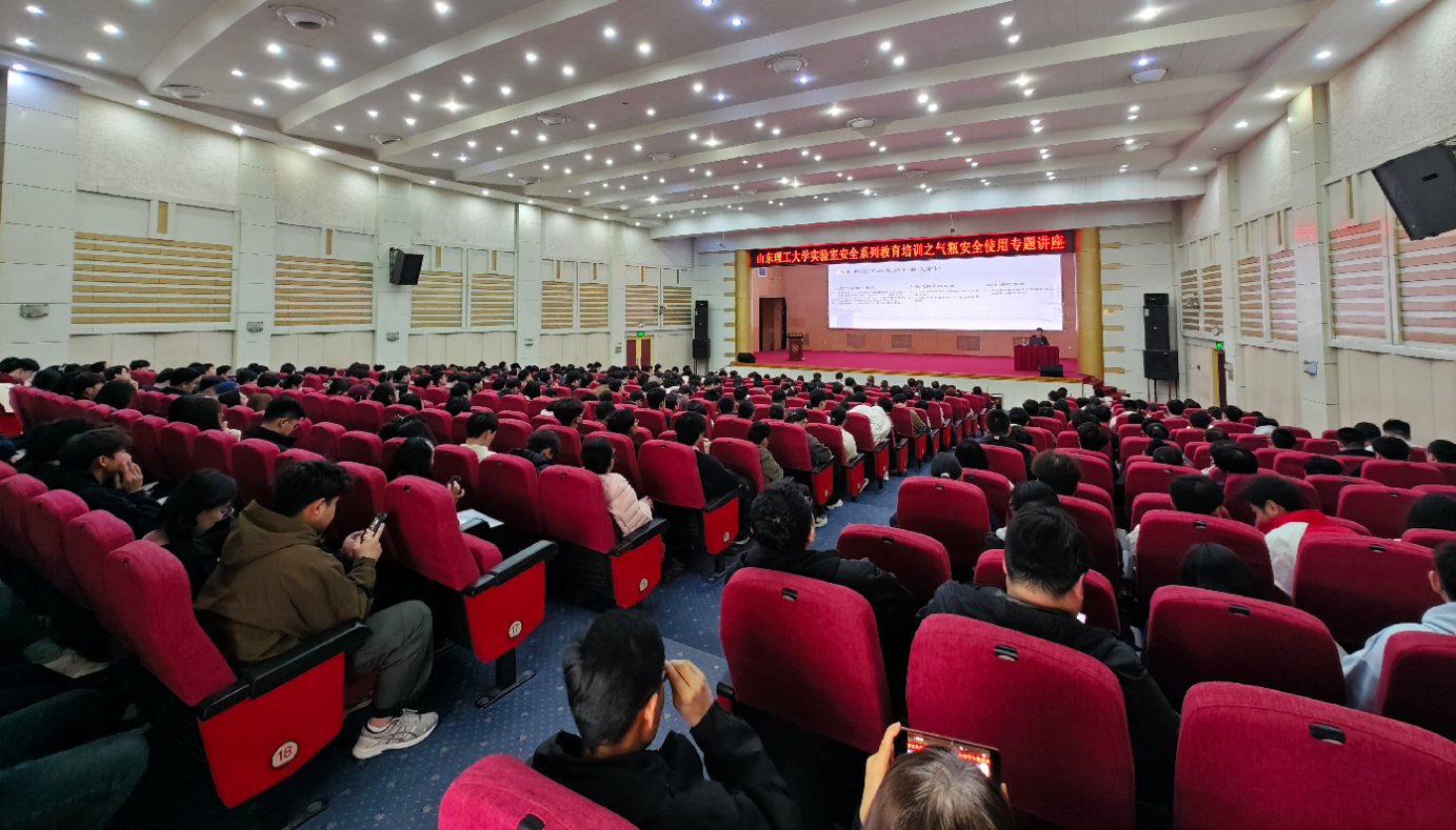 为深入贯彻落实国家、省和学校关于实验室安全工作的部署要求,持续加强实验室安全经常性教育与管理,2026年4月9日下午,学校在3号教学楼报告厅举办实验室气瓶安全专题培训讲座。本次培训由资产与实验设备管理处主办、化学化工学院协办,特邀山东欣鹏安全技术咨询有限公司注册安全工程师张国卫主讲,各相关学院实验室安全管理人员、涉及气瓶使用的实验技术人员及研究生、本科生等参加培训。资产与实验设备管理处、化学化工学院、分析测试中心等相关单位负责人出席,讲座由资产与实验设备管理处副处长李传高主持。